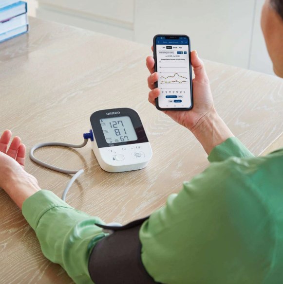 - Volg uw bloeddrukgegevens in de Omron Connect-app